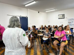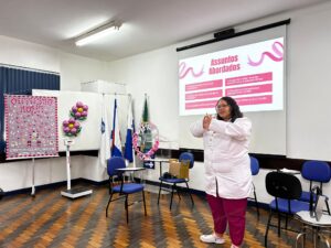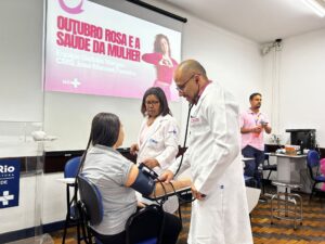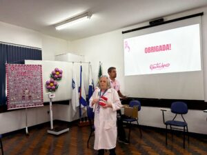 Nesta quinta-feira, 23 de outubro, a equipe de saúde Getúlio Vargas, do CMS Manoel José Ferreira, promoveu uma atividade em alusão ao Outubro Rosa, no auditório da Estação OTICS-Rio Catete. A ação teve como público-alvo os usuários da unidade e buscou conscientizar sobre a importância da prevenção e do diagnóstico precoce do câncer de mama.