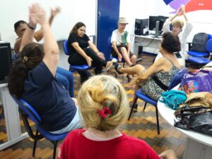 Nesta quarta-feira, 29 de outubro, foi realizado mais um encontro do Grupo de Fisioterapia do CMS Manoel José Ferreira, na sala de reuniões da Estação OTICS Catete. Conduzida pela fisioterapeuta Mariza Camargo, a atividade teve como foco o fortalecimento muscular, a ampliação da mobilidade e a prevenção do sedentarismo.