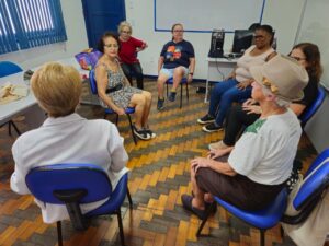 Durante o encontro, os participantes se envolveram em uma sequência de exercícios funcionais, adaptados para diferentes níveis de capacidade, realizados tanto em pé quanto sentados. Foram utilizados acessórios simples, como bolinhas de borracha, para trabalhar a coordenação motora e os movimentos articulares de braços, pernas e pescoço. A proposta buscou garantir não só a eficácia dos movimentos, mas também a segurança e o conforto dos participantes, respeitando suas individualidades.