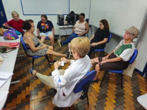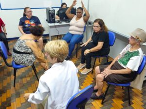 Nesta quarta-feira, 29 de outubro, foi realizado mais um encontro do Grupo de Fisioterapia do CMS Manoel José Ferreira, na sala de reuniões da Estação OTICS Catete. Conduzida pela fisioterapeuta Mariza Camargo, a atividade teve como foco o fortalecimento muscular, a ampliação da mobilidade e a prevenção do sedentarismo.