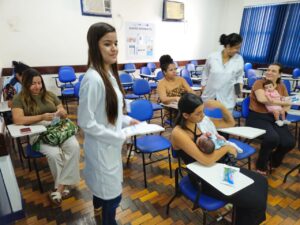 Durante a atividade, também foram discutidos aspectos importantes do pós-parto, como recuperação física, apoio familiar, amamentação e saúde emocional da mãe. O momento permitiu o esclarecimento de dúvidas e incentivou o diálogo aberto entre profissionais e usuárias.