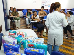 Durante a atividade, também foram discutidos aspectos importantes do pós-parto, como recuperação física, apoio familiar, amamentação e saúde emocional da mãe. O momento permitiu o esclarecimento de dúvidas e incentivou o diálogo aberto entre profissionais e usuárias.