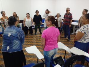 Nesta sexta-feira, 28 de novembro, no auditório da Estação OTICS-Rio Catete, ocorreu o encontro do Grupo de Terapia Integrativa do CMS Manoel José Ferreira. A atividade foi conduzida por Ana Laura, com o objetivo de promover o bem-estar físico e mental por meio de práticas integrativas e exercícios cognitivos.