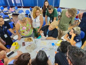Nesta terça-feira, 13 de janeiro de 2026, o auditório da Estação OTICS-Rio Catete, no CMS Manoel José Ferreira, recebeu uma capacitação em raspado intradérmico para hanseníase, organizada pela CAP 2.1. A atividade, realizada em alusão ao Janeiro Roxo, mês de conscientização sobre a doença, foi voltada para profissionais de diversas unidades de saúde da Área de Planejamento 2.1 e conduzida por Viviani Lima, da Gerência de Dermatologia da CAP, e pela enfermeira Maria Emília Raiol. O encontro teve como objetivo qualificar as equipes para o diagnóstico precoce, fortalecer a vigilância e aprimorar o cuidado integral às pessoas acometidas pela hanseníase.
