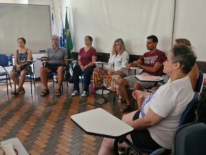 O encontro teve início com a prática da meditação Anapana, conhecida como a meditação da atenção plena à respiração. De origem budista, a técnica consiste na observação da respiração natural, sem interferências, favorecendo a clareza mental, a tranquilidade e o estado de alerta. O exercício proporcionou momentos de serenidade e concentração, fundamentais para o fortalecimento da atenção e da presença no momento presente.