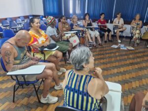 Na manhã desta quinta-feira, 15 de janeiro, no Auditório da Estação OTICS-Rio Catete, foi realizado mais um encontro do Grupo de Terapia Integrativa do CMS Manoel José Ferreira, sob a condução da terapeuta ocupacional Ana Laura. A atividade reuniu usuários da unidade com o objetivo de promover o bem-estar físico e mental, por meio de práticas integrativas e exercícios cognitivos.