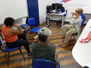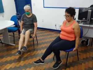 Ao final das atividades físicas, a fisioterapeuta promoveu uma conversa aberta, esclarecendo dúvidas e abordando como os exercícios podem ser aplicados na rotina diária. Essa troca contribuiu para conscientizar o grupo sobre a importância do autocuidado e da manutenção de hábitos saudáveis.