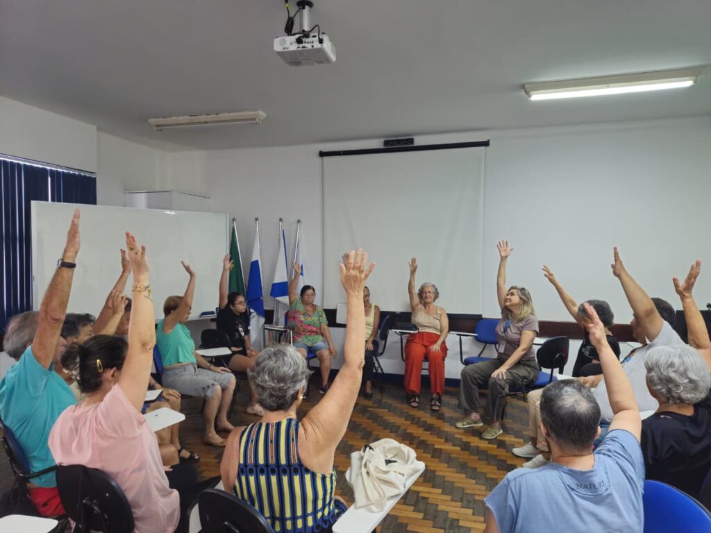 Em seguida, os participantes vivenciaram um momento de dança e música, estimulando a expressão corporal, o ritmo e a coordenação motora. A atividade, conduzida de forma leve e acolhedora, incentivou movimentos simples e adaptados às possibilidades de cada um, promovendo integração, socialização e alegria. Além de contribuir para a saúde física, a dança também favoreceu a autoestima, a criatividade e o fortalecimento dos vínculos entre os integrantes do grupo.