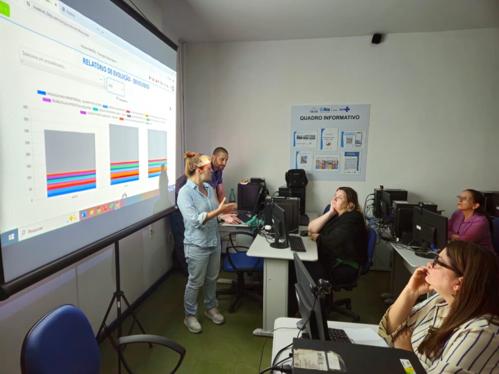 Nesta terça-feira, foi realizado o treinamento do sistema MediRec, ministrado por seus fundadores e desenvolvedores, Tarek Nabaa e Luana Nabaa, com a equipe da Coordenação de Doenças Transmissíveis (CDT). O encontro contou com a presença de profissionais de quatro gerências da Secretaria Municipal de Saúde (SMS) e teve como foco as funcionalidades mais relevantes da plataforma, que visa facilitar o monitoramento e qualificar o cuidado dos agravos acompanhados pelas Gerências de HIV/IST, Hepatites Virais, Doenças Dermatológicas Prevalentes e Doenças Pulmonares Prevalentes.