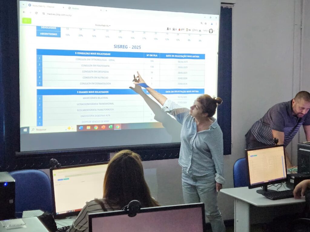 Durante a sessão, foram abordados o módulo de regulação e encaminhamentos, as listas de prioridades e o acompanhamento de exames laboratoriais. Além da apresentação das funcionalidades, os acessos de todos os participantes foram ativados no decorrer do encontro, possibilitando que a equipe já inicie a utilização do sistema em sua rotina de trabalho.