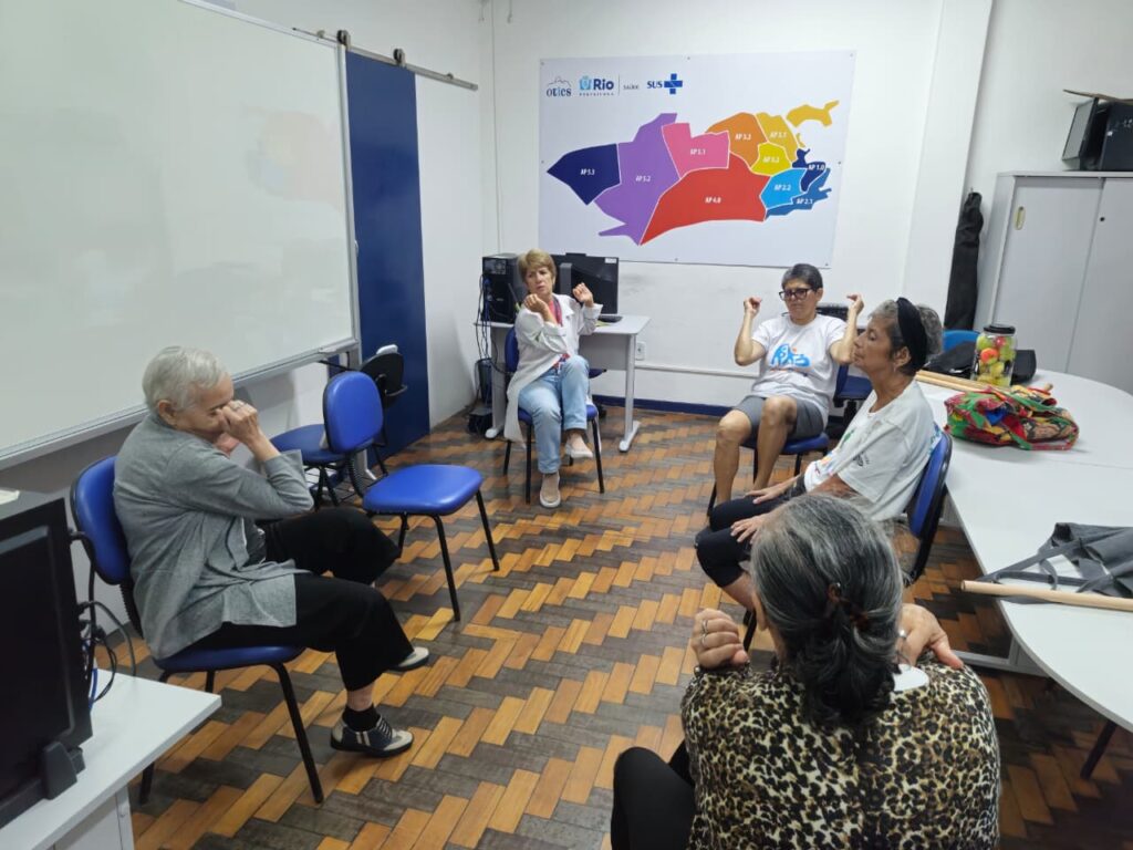Nesta quarta-feira, 1º de abril, o Grupo de Fisioterapia do Centro Municipal de Saúde (CMS) Manoel José Ferreira reuniu-se na sala de reunião da Estação OTICS-Rio Catete, conduzido pela fisioterapeuta Mariza Camargo. A atividade deu continuidade às ações de promoção da saúde, com foco no fortalecimento muscular, na ampliação da mobilidade e na prevenção do sedentarismo.