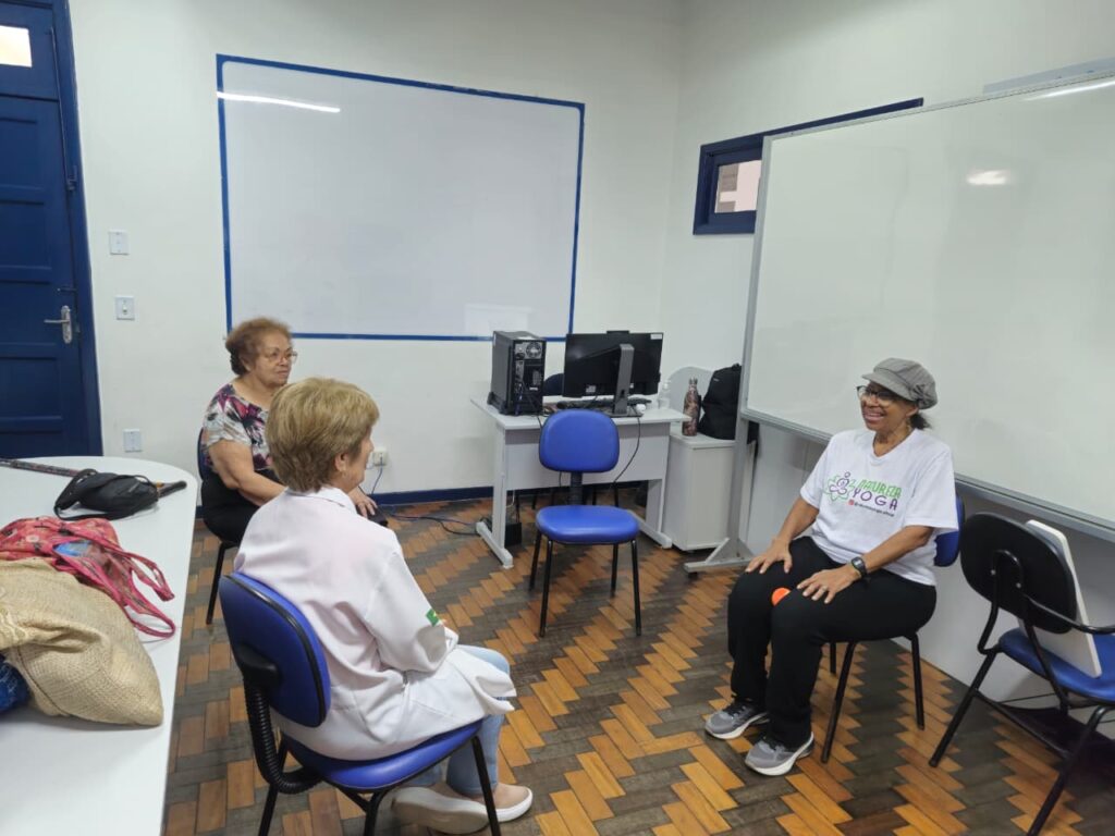Ao final das atividades físicas, a fisioterapeuta promoveu uma conversa aberta, esclarecendo dúvidas e abordando como os exercícios podem ser aplicados na rotina diária. Essa troca contribuiu para conscientizar o grupo sobre a importância do autocuidado e da manutenção de hábitos saudáveis.