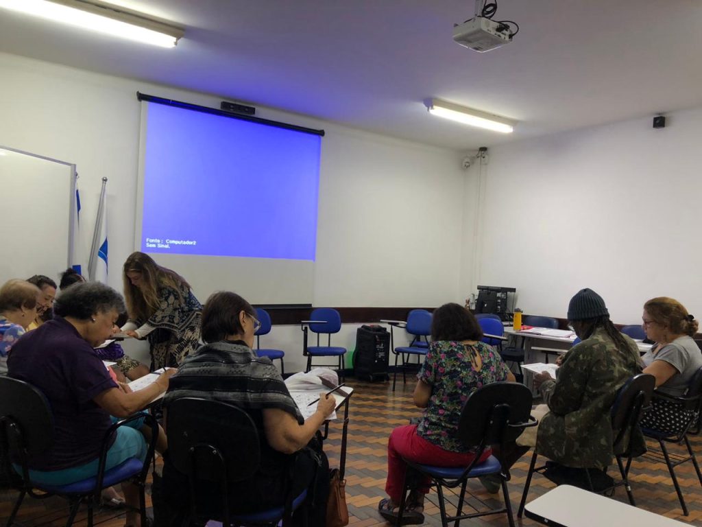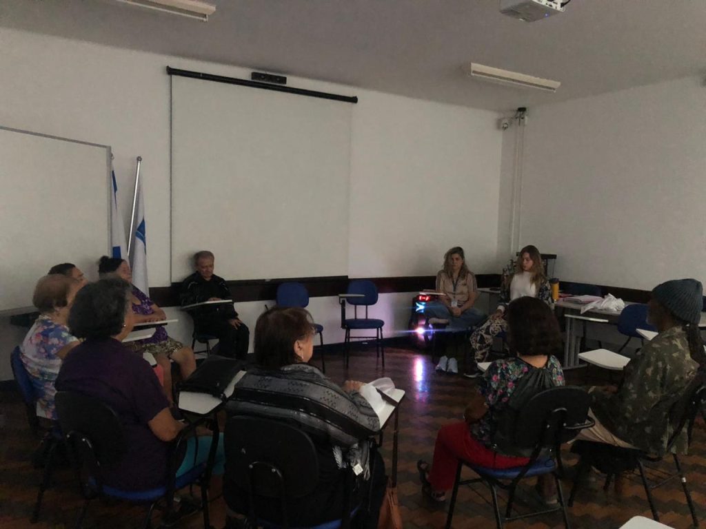 Nesta quinta-feira, 10 de abril, aconteceu mais um encontro do grupo de terapia integrativa, do Centro Municipal de Saúde (CMS) Manoel José Ferreira, no auditório da Estação OTICS-Rio Catete. A atividade, conduzida pela terapeuta ocupacional Ana Laura Veloso, tinha como objetivo promover bem-estar físico e mental dos participantes.