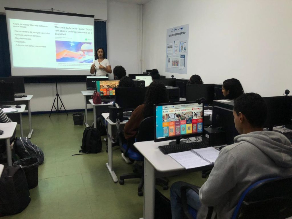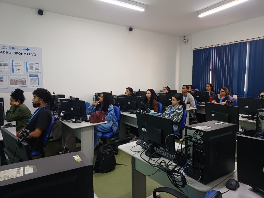 Nesta terça-feira, 14 de abril, o laboratório de informática da Estação OTICS-Rio Catete recebeu uma aula do Programa de Residência em Vigilância Sanitária, conduzida pela preceptora Wilenes Souza. Promovida pela Secretaria Municipal de Saúde do Rio de Janeiro (SMS-RJ), a atividade reuniu residentes do primeiro ano das turmas uni e multiprofissional do IVISA, com o objetivo de discutir a atuação em vigilância sanitária.