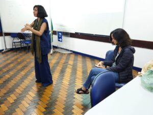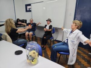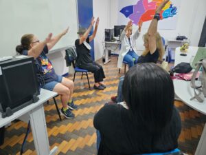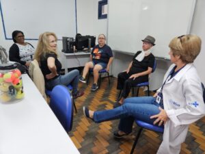 Ao final das atividades físicas, a fisioterapeuta promoveu uma conversa aberta, esclarecendo dúvidas e abordando como os exercícios podem ser aplicados na rotina diária. Essa troca contribuiu para conscientizar o grupo sobre a importância do autocuidado e da manutenção de hábitos saudáveis.