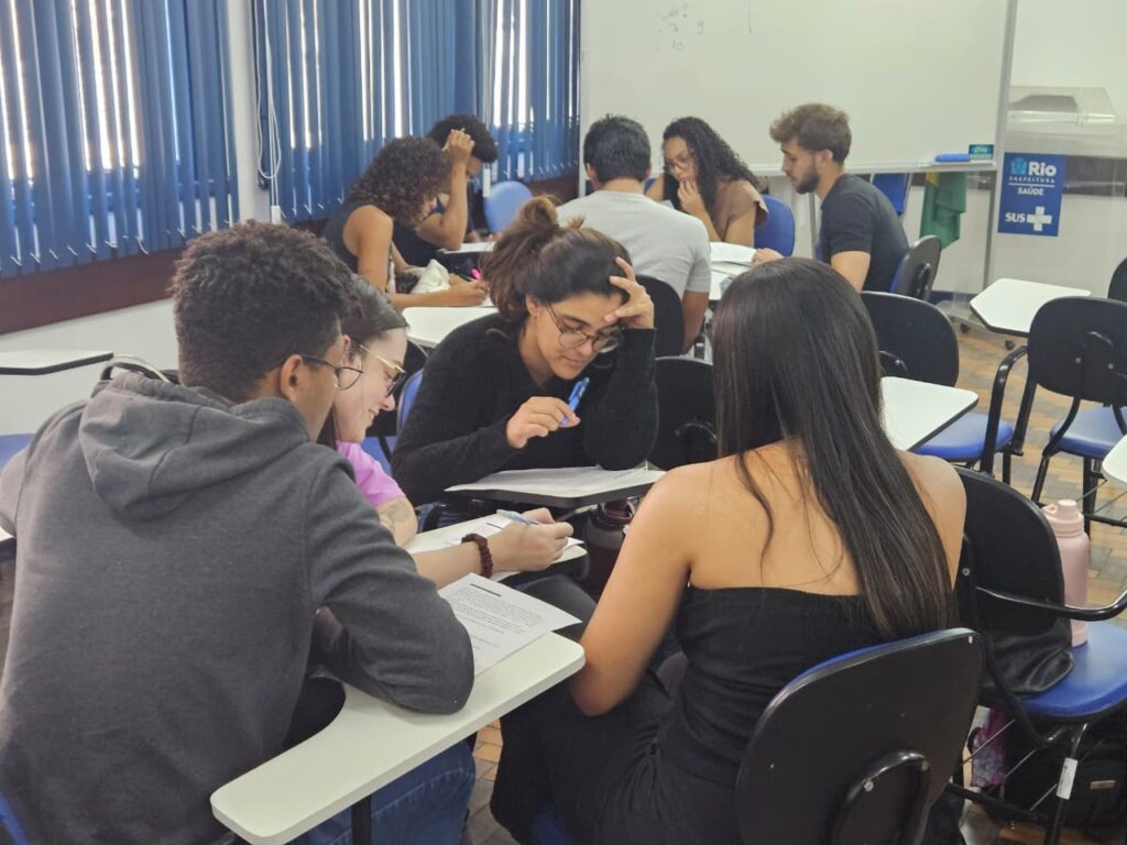 Ao final da aula, os participantes participaram de uma dinâmica em grupo com o objetivo de revisar os principais conteúdos abordados e promover a troca de experiências entre os residentes. A atividade estimulou o raciocínio clínico, o trabalho em equipe e reforçou a aplicação prática do conhecimento adquirido.