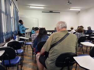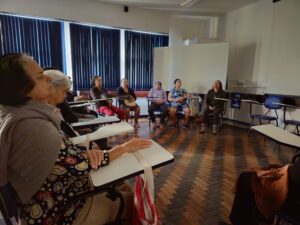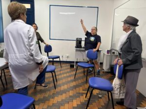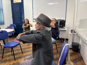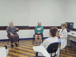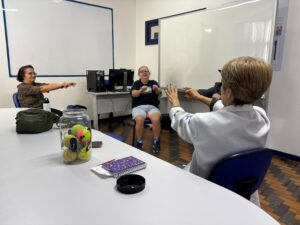 Ao final das atividades físicas, a fisioterapeuta promoveu uma conversa aberta, esclarecendo dúvidas e abordando como os exercícios podem ser aplicados na rotina diária. Essa troca contribuiu para conscientizar o grupo sobre a importância do autocuidado e da manutenção de hábitos saudáveis.