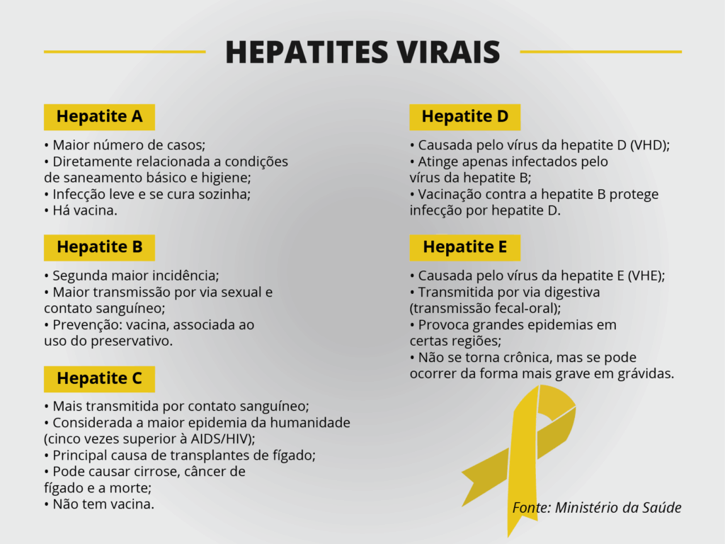 As hepatites virais são infecções que atingem o fígado, causando alterações leves, moderadas ou graves. Na maioria das vezes, são infecções silenciosas, ou seja, não apresentam sintomas. Elas são causadas por vírus e algumas hepatites se dão pelo uso de medicamentos, álcool e outras drogas, assim como por doenças autoimunes, metabólicas ou genéticas.