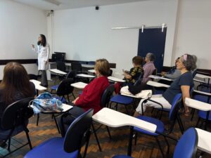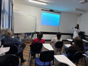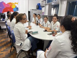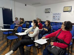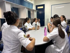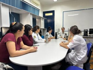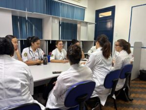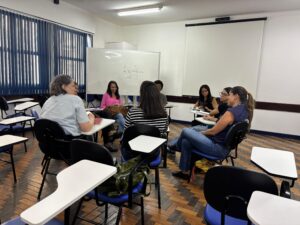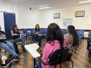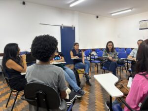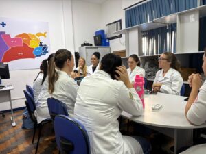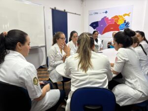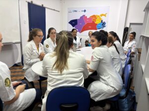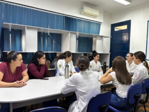 Durante o encontro, os alunos compartilharam novas experiências vividas em campo, abordando desde estratégias de acolhimento até dificuldades na comunicação com os usuários. As discussões trouxeram à tona aspectos fundamentais do cuidado, como a empatia, o respeito às singularidades e a capacidade de adaptação frente aos diferentes contextos enfrentados no território. A professora Vanessa estimulou o grupo a pensar sobre o papel da enfermagem como agente facilitador de vínculos e promotor da equidade. Em um ambiente de escuta aberta e respeitosa, os estudantes puderam reconhecer seus avanços e identificar pontos de melhoria, fortalecendo o compromisso com uma atuação pautada nos valores do SUS.
