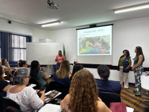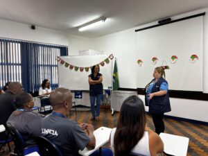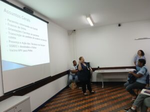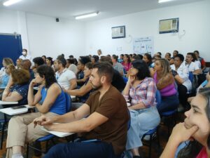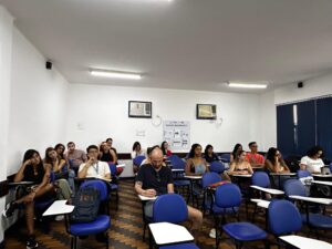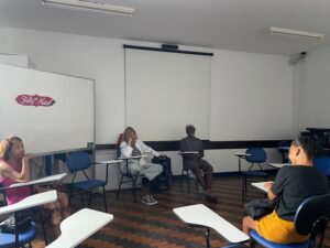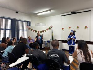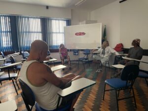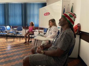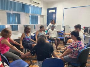 Em um segundo momento, a terapeuta propôs uma roda de conversa com o objetivo de estimular as capacidades cognitivas dos participantes. Durante a atividade, os presentes foram convidados a compartilharem suas ideias e experiências, promovendo a interação e o exercício da memória, raciocínio e linguagem. A dinâmica favoreceu um ambiente de troca e aprendizado, incentivando o pensamento criativo e o fortalecimento das habilidades cognitivas de forma leve e colaborativa.