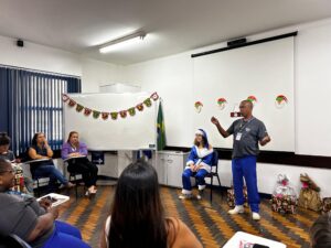 Na manhã de quinta-feira, 26 de dezembro de 2024, o Grupo de Terapia Integrativa do CMS Manoel José Ferreira realizou mais um encontro no auditório da Estação Otics – Rio Catete. Sob a orientação da terapeuta ocupacional Ana Laura Veloso, os integrantes participaram de atividades voltadas para a promoção do bem-estar físico e mental. Através da prática da meditação e de exercícios de estimulação cognitiva, todos buscaram a conexão entre corpo e mente, criando um ambiente de calma e fortalecimento da saúde emocional e mental. O encontro proporcionou momentos de reflexão e relaxamento, essencial para o equilíbrio e a melhora da qualidade de vida dos presentes.