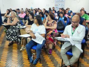 Nesta quarta-feira, 22 de outubro, o auditório da Estação OTICS-Rio Catete, localizado no CMS Manoel José Ferreira, recebeu um treinamento em auriculoterapia, conduzido pela enfermeira Maria Emília Raiol. A atividade foi voltada para profissionais de diversas unidades de saúde da Área de Planejamento 2.1 e teve como objetivo capacitar os participantes na utilização da técnica como recurso terapêutico complementar no SUS, ampliando o cuidado oferecido à população.